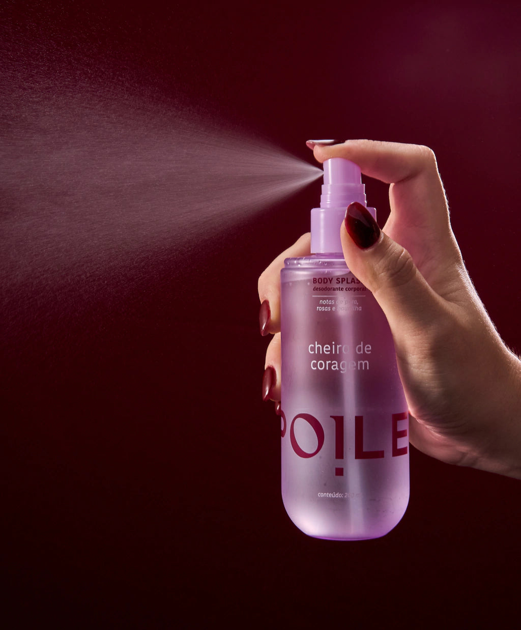 Da linha “Dá Pra Sentir no Ar”, o Body Splash Cheiro de Coragem traz 200ml e 6% de fragrância. Ele entrega uma perfumação duradoura digna de colônia, envolvendo a pele com notas chypre florais que revelam força, elegância e autoconfiança.